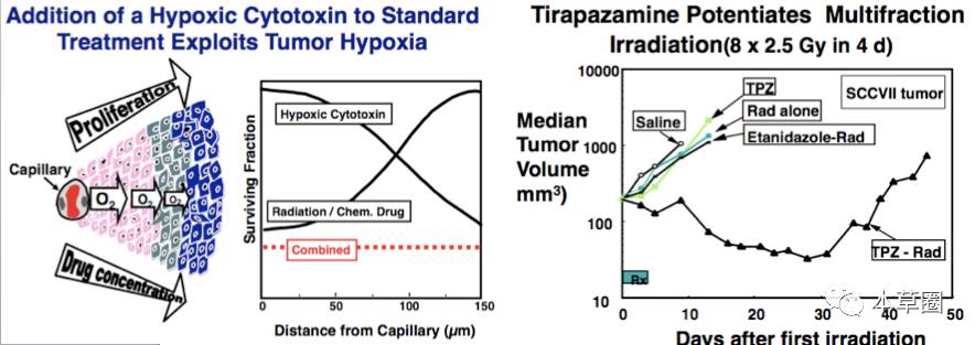 已有实验数据表示,标准疗法中加入缺氧细胞毒素利用了肿瘤低氧机制,放疗结合细胞毒素Tirapazamine能够增强疗效。